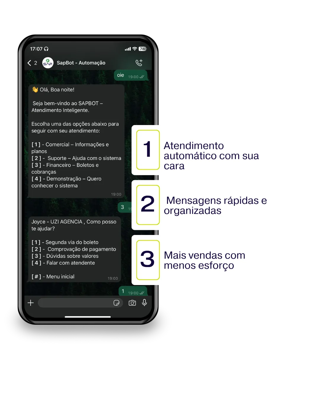 A SAPBOT cria atendimentos automáticos, inteligentes e humanizados para transformar conversas em vendas.